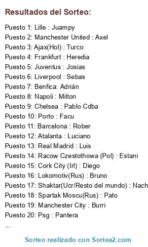 Resultados del sorteo: