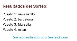 Lista de participantes: barcelona, milan, newcastillo, Marsella.