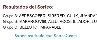 Lista de participantes: JUANRA TM, MAKAROOV69, AFRESCOFER, BELLOTO, ALLU, SIRFRED, IMPARABLE, CUUK, ACOSTILLADOR, LUISMACHO.