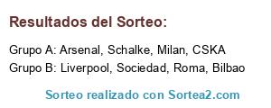 Lista de participantes: CSKA, Liverpool, Schalke, Roma, Arsenal, Bilbao, Sociedad, Milan.