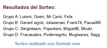 Lista de participantes: Segg, Fracasados, Sergioteam, Frank74, Jotasensei, Mugiwaras, Felix, Mouki, Gerard sigrid, Mr Carni, Migue86, Popestars, Podernegrito, Osein, Pausal80, Luismi.