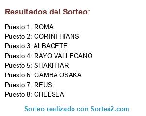 Lista de participantes: RAYO VALLECANO, CHELSEA, SHAKHTAR, CORINTHIANS, REUS, ROMA, GAMBA OSAKA, ALBACETE.