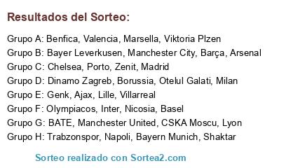 Lista de participantes: Barça, Manchester United, Chelsea, Bayern Munich, Arsenal, Madrid, Porto, Inter, Milan, Lyon, Shaktar, Valencia, Benfica, Villarreal, CSKA Moscu, Marsella, Zenit, Ajax, Bayer Leverkusen, Olympiacos, Manchester City, Lille, Basel, BATE, Borussia, Napoli, Dinamo Zagreb, Nicosia, Trabzonspor, Genk, Viktoria Plzen, Otelul Galati.