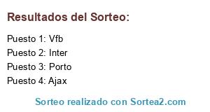 Lista de participantes: Ajax, Porto, Vfb, Inter.