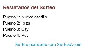 Lista de participantes: City, Ibiza, Nuevo castillo, Psv.
