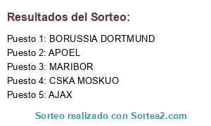 Lista de participantes: BORUSSIA DORTMUND, MARIBOR, AJAX, APOEL, CSKA MOSKUO.