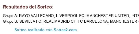 Lista de participantes: REAL MADRID CF, INTER DE MILAN, FC BARCELONA, MANCHESTER UNITED, MANCHESTER CITY, LIVERPOOL FC, RAYO VALLECANO, SEVILLA FC.
