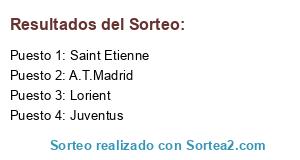 Lista de participantes: Lorient, Saint Etienne, A.T.Madrid, Juventus.