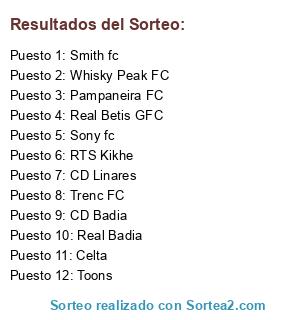 Lista de participantes: Real Betis GFC, CD Badia, RTS Kikhe, Trenc FC, Pampaneira FC, CD Linares, Whisky Peak FC, Real Badia, Celta, Sony fc, Toons, Smith fc.