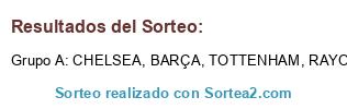 Lista de participantes: RAYO, BARÇA, CHELSEA, TOTTENHAM.