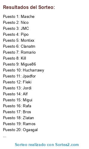 Resultados del sorteo: