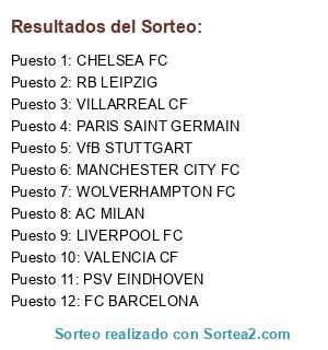 Lista de participantes: VfB STUTTGART, MANCHESTER CITY FC, LIVERPOOL FC, AC MILAN, WOLVERHAMPTON FC, PSV EINDHOVEN, CHELSEA FC, FC BARCELONA, VILLARREAL CF, PARIS SAINT GERMAIN, VALENCIA CF, RB LEIPZIG.