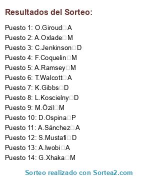 Resultados del sorteo: