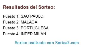 Lista de participantes: MALAGA, PORTUGUESA, INTER MILAN, SAO PAULO.