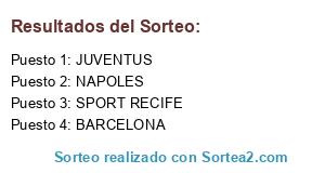 Lista de participantes: JUVENTUS, BARCELONA, NAPOLES, SPORT RECIFE.