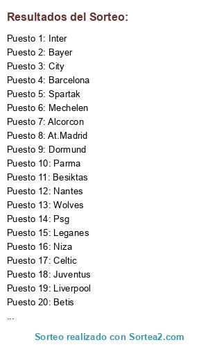 Lista de participantes: Psg, Fenerbache, Ath. Bilbao.