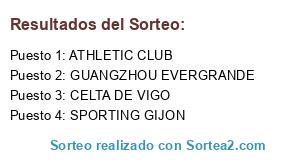 Lista de participantes: CELTA DE VIGO, GUANGZHOU EVERGRANDE, ATHLETIC CLUB, SPORTING GIJON.