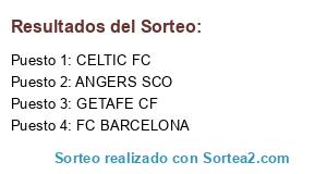 Lista de participantes: FC BARCELONA, CELTIC FC, GETAFE CF, ANGERS SCO.