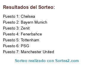 Resultados del sorteo: