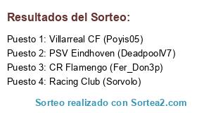 Lista de participantes: CR Flamengo (Fer_Don3p), PSV Eindhoven (DeadpoolV7), Racing Club (Sorvolo), Villarreal CF (Poyis05).