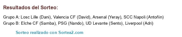 Lista de participantes: Losc Lille (Dani), Valencia CF (David), Arsenal (Yeray), SCC Napoli (Antoñin), Liverpool (Adri), UD Levante (Sento), Elche CF (Samba), PSG (Nando).