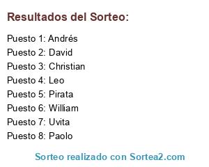 Lista de participantes: Andrés, Pirata, Uvita, Leo, David, William, Paolo, Christian.