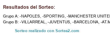Lista de participantes: -ROMA, -AT.MADRID, -MANCHESTER UNITED, -NAPOLES, -VILLARREAL, -SPORTING, -JUVENTUS, -BARCELONA.