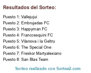 Lista de participantes: Olimpiakos CC, The Beatles FC, FC Konectao, Puente Viejo, Merida, Snoorkels, Gelui FC, Almassora Players.