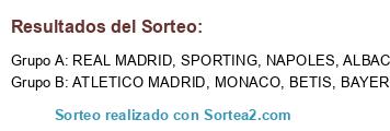 Lista de participantes: SPORTING, ATLETICO MADRID, ALBACETE, BAYER MUNICH, BETIS, NAPOLES, MONACO, REAL MADRID.