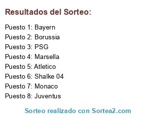 Lista de participantes: Bayern, Atletico, Borussia, Juventus, Shalke 04, PSG, Marsella, Monaco.