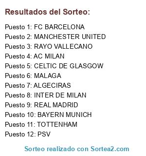 Resultados del sorteo: