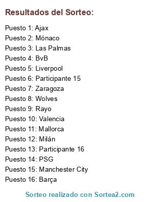 Lista de participantes: PSG, Mallorca, Manchester City, Valencia, Milan, Monaco, BvB, Rayo, Ajax, Zaragoza, Liverpool.