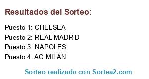 Lista de participantes: CHELSEA, NAPOLES, AC MILAN, REAL MADRID.