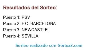 Lista de participantes: SEVILLA, PSV, NEWCASTLE, F.C. BARCELONA.