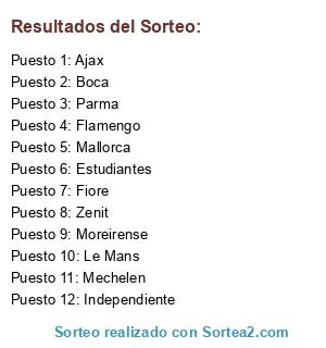 Lista de participantes: Ajax, Boca, Fiore, Independiente, Mechelen, Moreirense, Flamengo, Parma, Mallorca, Zenit, Estudiantes, Le Mans.