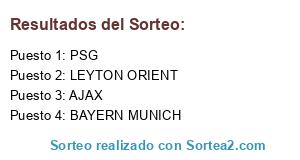 Lista de participantes: AJAX, LEYTON ORIENT, BAYERN MUNICH, PSG.