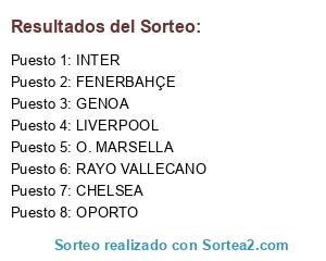 Lista de participantes: CHELSEA, RAYO VALLECANO, FENERBAHÇE, GENOA, LIVERPOOL, OPORTO, INTER, O. MARSELLA.
