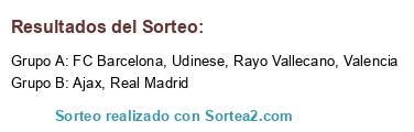 Lista de participantes: Ajax, Udinese, Rayo Vallecano, Real Madrid, Valencia, FC Barcelona.