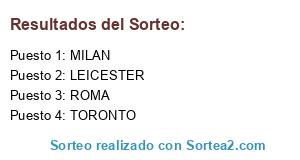 Lista de participantes: ROMA, MILAN, LEICESTER, TORONTO.