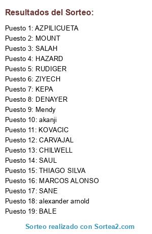 Lista de participantes: Mendy, KEPA, AZPILICUETA, THIAGO SILVA, RUDIGER, CARVAJAL, CHILWELL, MARCOS ALONSO, alexander arnold, akanji, KOVACIC, SAUL, MOUNT, SANE, ZIYECH, HAZARD, BALE, DENAYER, SALAH.