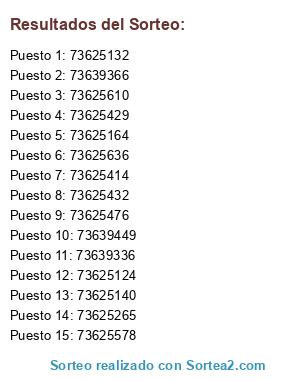 Lista de participantes: Sorteo realizado sobre un fichero que contiene 450 participantes.