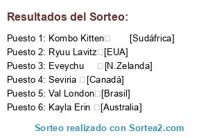 Lista de participantes: Kayla Erin [Australia], Val London [Brasil], Seviria [Canadá], Ryuu Lavitz [EUA], Eveychu [N.Zelanda], Kombo Kitten [Sudáfrica].