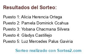 Lista de participantes: BlanQuita CM, Ana Rosa, Kimberly Elguera Díaz, Christian Cadillo Román, Pamelita Huamani H, Ericka Meza, Lisset Campos, Julissa Susana Soto Lopez, Lorena Garcia Mujica, Vanessa Leona, Violeta Felicita Sandmann Diaz, Kary Guadalupe Mesía Tirado, Alicia Herencia Ortega, Victor Eduardo Villafuerte Robles, Salvador Cruz Alfaro, Lydia Vega, Myriam Sg, Claudia Alcántara, Paola Martinez Arteaga, Nathaly Benavides, Mercedes Gala, Johana Marlene Flores Rocha, Katherine Alvarado, Leslie Diaz, Ketty Jauregui, Perla de Díaz, Jennifer Sofia Prado Caballero, Josefina Herlinda, Vanessa Condor, Gustavo Garcia, Les Mimi, Vasco Alonso, Maritza Olivares, Luz Mercedes Palus Gaviria, Bernardita Salvatierra, Milagros Stephanie Prado, Priscilia Soto Castro, Marina Rodriguez, Mila Trujillo, Antonio T. Woody, Luisa Jesus, Marie Aguilar, Cesar Enrique, Cintya Barrientos, Yobana Chacmana Silvera, Kiariita Varias, Yanely De Sosa, Vanessa Nilupu Moreno, Noelia León, Miluska Barbarán, Pamela Dominick Ccahua, Gladys Castillejo, Elizabeth Il.