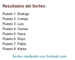 Lista de participantes: Conejo, Luis, Pablo, Royo, Nava, Rodrigo, Gurrea, Karke.