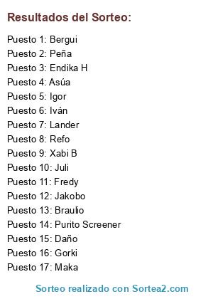 Lista de participantes: Purito Screener, Igor, Iván, Lander, Gorki, Endika H, Maka, Braulio, Xabi B, Peña, Daño, Refo, Asúa, Fredy, Bergui, Juli, Jakobo.