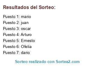 Resultados del sorteo: