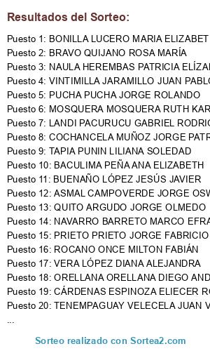 - Puesto 18: ORELLANA ORELLANA DIEGO ANDRÉS