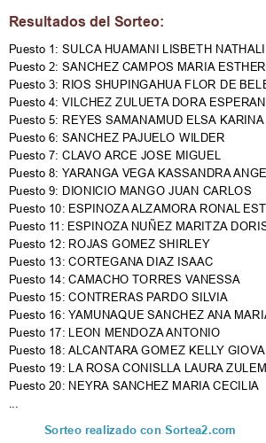 - Puesto 16: YAMUNAQUE SANCHEZ ANA MARIA
