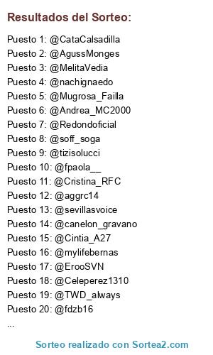 Lista de participantes: @ErJuanico, @Redondoficial, @bringmethxmars, @iamwithkev, @Mugrosa_Failla, @nachignaedo, @Aryii2002, @gratefulvigna, @canelon_gravano, @DulceNayar_, @AgussMonges, @aggrc14, @paodrew94, @Daniel_Jonatan4, @FrancoVangioni, @ByteSupervisor, @PetiBlack, @fdzb16, @ReaderPassionat, @ignorame, @Natyeli_V, @Cristina_RFC, @delfinaferrao, @luulivieera, @Solo_Risas_8, @mtfs_2, @RociioOrtigoza_, @white_conguito, @CataCalsadilla, @lloydwithlovat, @RicciJauregui, @briisa_marinell, @mangonzalopez, @IrykulPeuker, @oopshitqueen, @TWD_always, @tizisolucci, @ElMilloor, @selkietsune, @Cintia_A27, @fpaola__, @mylifebernas, @MilagrosCute, @marish_hargitay, @Jotace420one, @ErooSVN, @brisadom_, @sevillasvoice, @sitalpzsolano, @BianquiiCastro, @Mishelle_rojas_, @soff_soga, @Celeperez1310, @MelitaVedia, @albbbbbbert, @Andrea_MC2000, @klabasa_.
