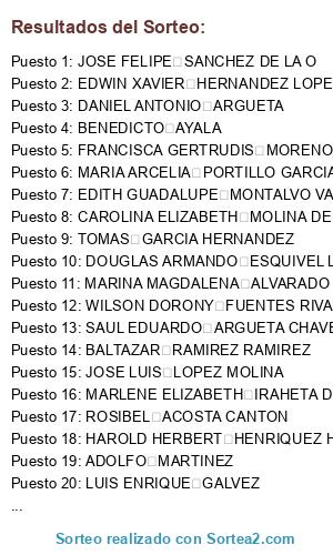 - Puesto 10: DOUGLAS ARMANDO ESQUIVEL LOPEZ